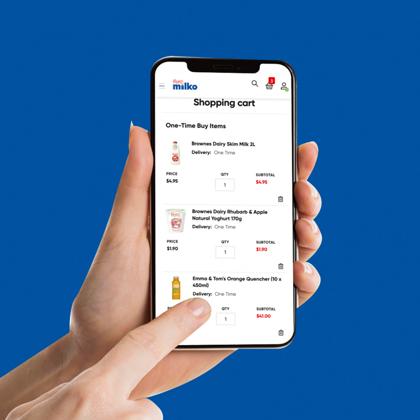 Customers can place orders online for a variety of products, including milk, juice, yoghurts, and more.